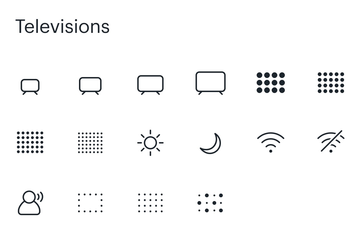 When words were not the best tool, I crafted bespoke iconography. Working with the design standards team, I created icons for some of the more nuanced categories such as smart locks and security cameras.